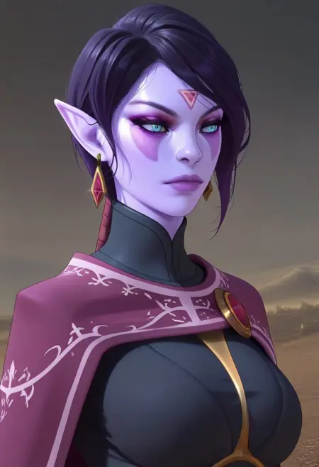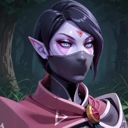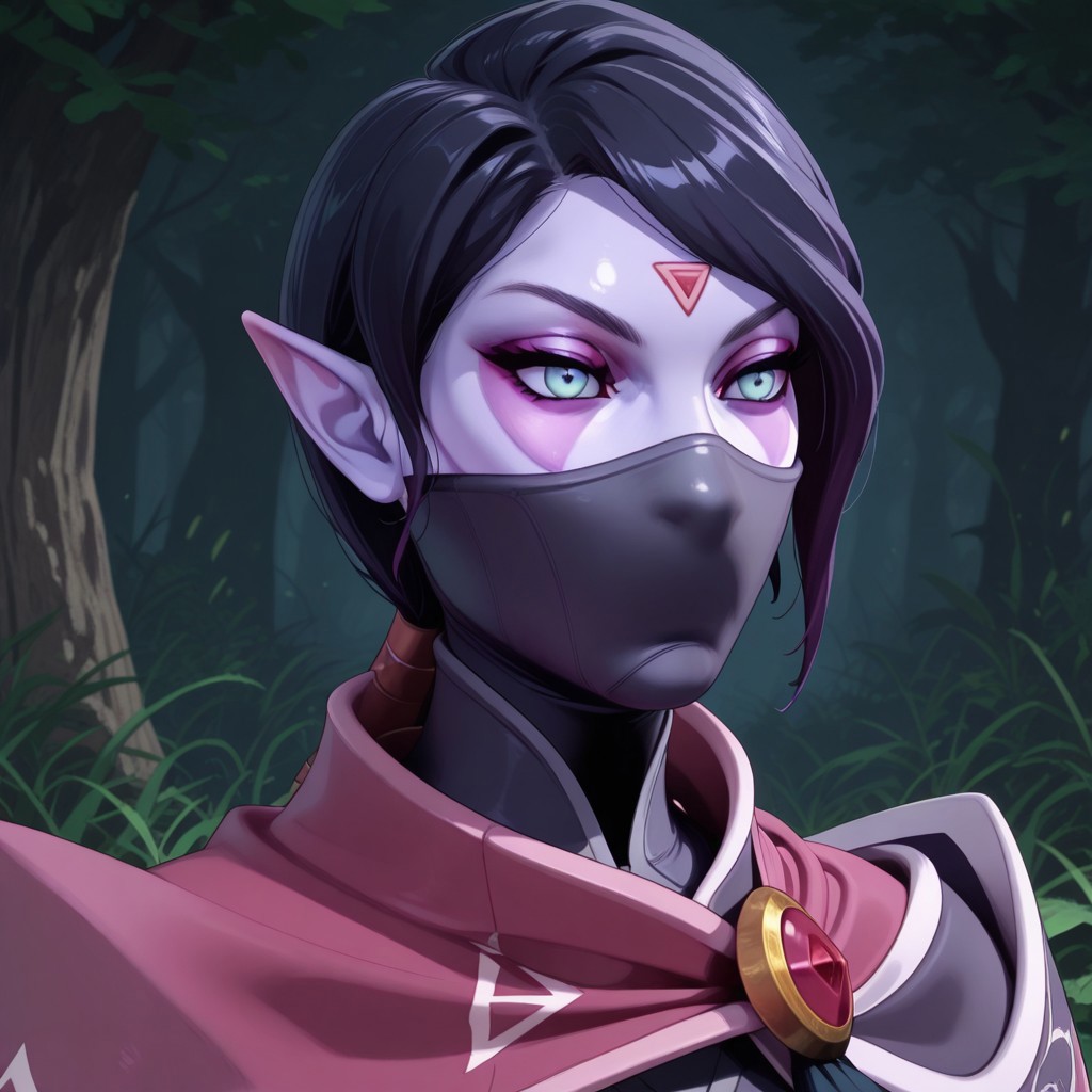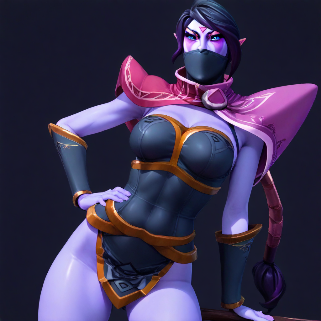 templar_assassin futanari purple skin blue eyes facepaint mask pointy ears