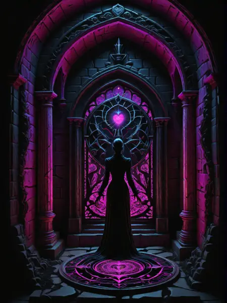 这个LoRA喜欢心形和玫瑰,但不是那种贺卡风格的。致命哥特情人节是那个可爱的哥特女孩,她会在从你心口撕下你那颗流血的心之后,给予它甜蜜一吻。使用DGValentine和deadly_gothic_valentine,强度设为1.0-1.4,以获得扭曲的奢华、低调的忧郁戏剧感,以及对心形、玫瑰和黑色的偏爱。
