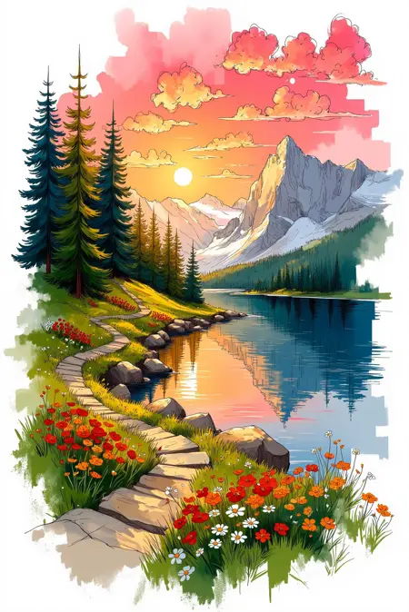 This LoRA emulates the charm of hand-rendered travel journals and urban sketching, blending confident gesture lines, selective crosshatching, and delicate watercolor washes. This LoRA captures the spontaneity of plein-air art with dry-brush textures, pigment bleeds, and crisp ink linework—perfect for stylized landscapes, vehicles, architecture, flowers and expressive character studies. The aesthetic channels a fusion of cel-shaded precision and loose traditional media, evoking the feel of a field notebook brought vividly to life.