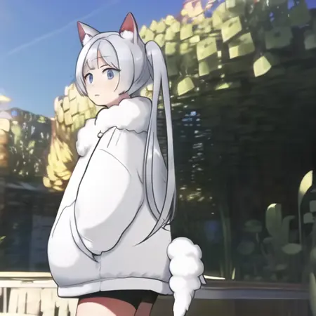 这是游戏《我的世界》中的娘化生物狼娘。使用了主创“泡沫星球”画风制作。