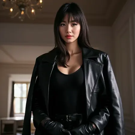 이 모델은 주로 검은 가죽 코트를 입은 여성의 초상을 생성하도록 개발되었습니다.