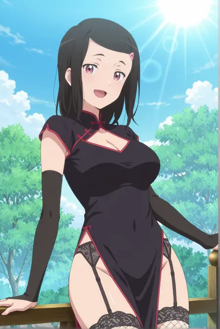 Basic: chisato-fu, 1girl, hair ornament, black hair, hairclip, soft rose-pink eyes, gentle and rounded shape