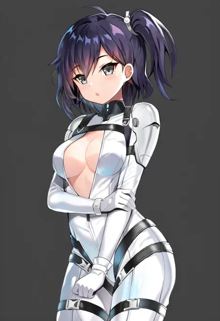 dhanaopini,灰眼睛,紫发,单侧高高扎起