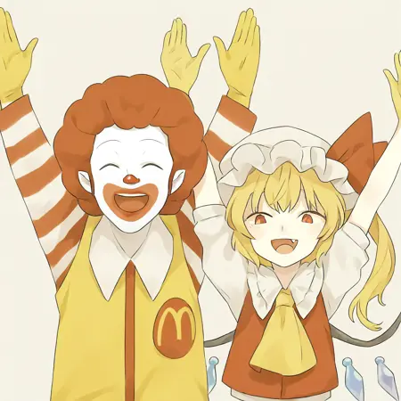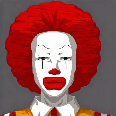 そして、私が今までで一番好きなクラウン神、ロナルド・マクドナルドと一緒に作る以上に良い人はいるだろうか。このモデルを実現するために、リアルな写真とアニメーションの様々な画像を用いて訓練した。