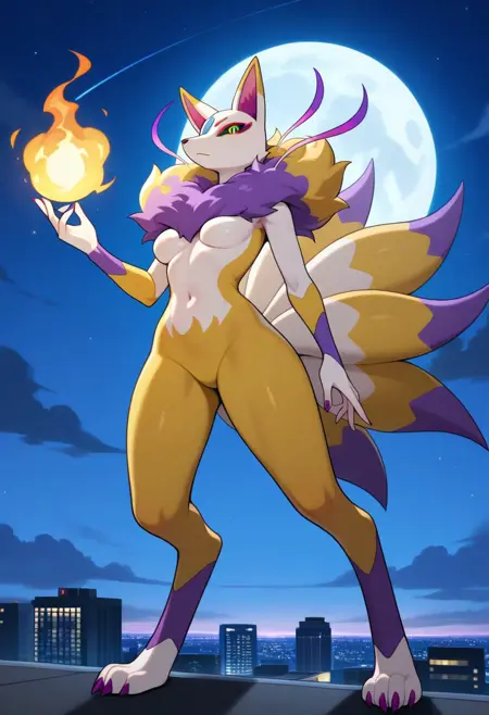 标签: kyub1, 人形, 獸迷, 黄色毛发, 白色毛发, 紫色毛发, 多色毛发, 九条尾巴, 多条尾巴, 狐尾, 长指甲, 黄色眼睛, 彩色巩膜, 绿色巩膜, 爪子