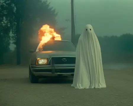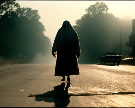 2016년 영화 《A Ghost Story》(케이시 애플렉, 루니 마라 주연)의 영화 스틸 50장으로 학습된 드림부스. 영화나 트레일러를 본 적이 있다면, 이 영화의 "유령"은 무서운 분위기보다 슬프고 외로운(특히 눈빛에서) 느낌을 더 강하게 받는다.