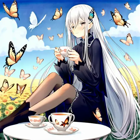 also put in white hair, 1girl the usual so she doesn't have black hair or something