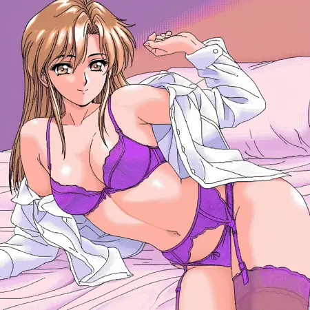シンクハイ、下着、ランジェリー、ブラ、ガーターベルト、シャツ、パンティ、開いたシャツ、開いた服、パープルブラ