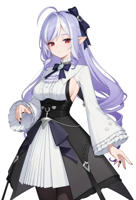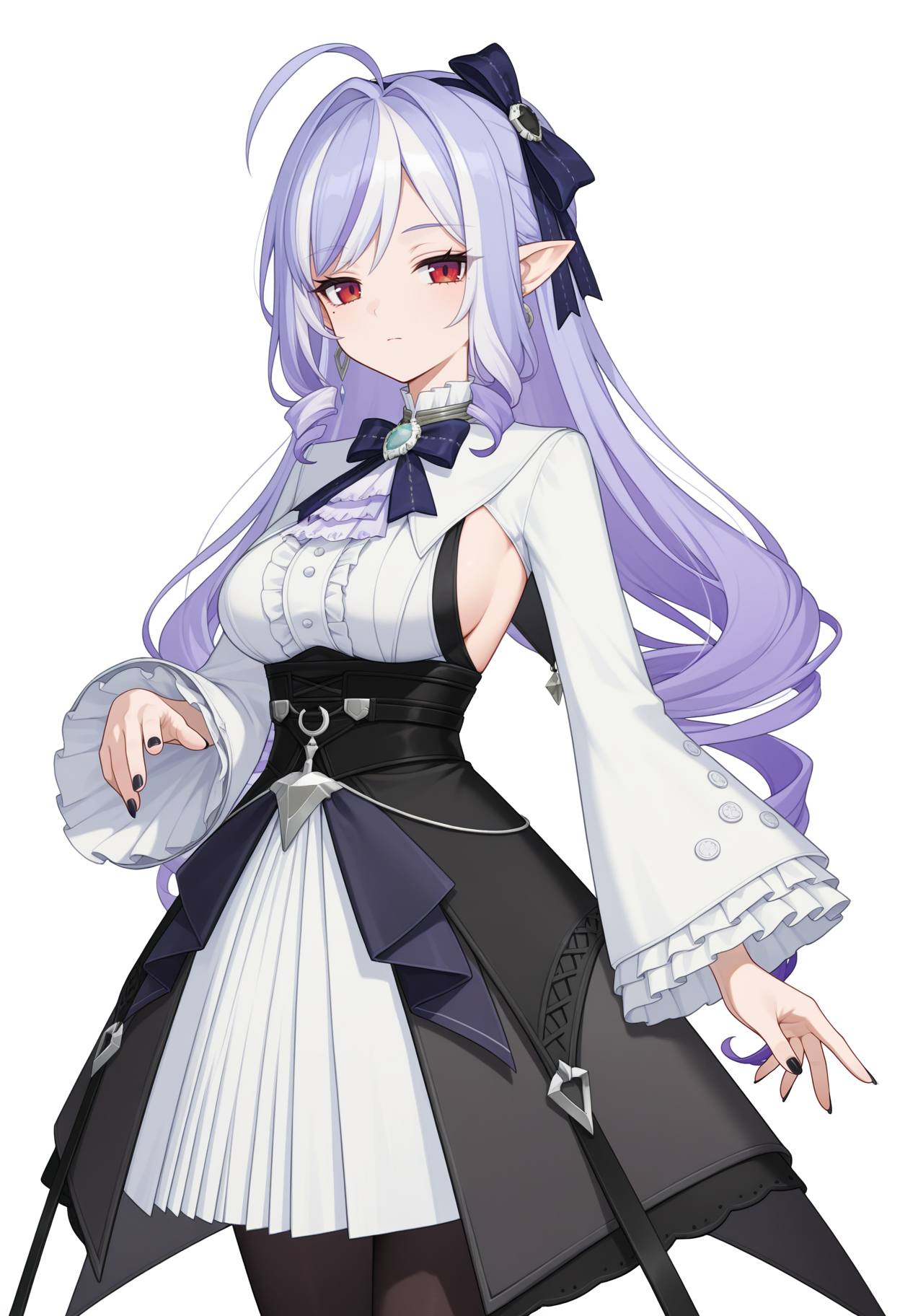 mole under eye,ahoge,pointy ears,white hair,purple hair,red eyes