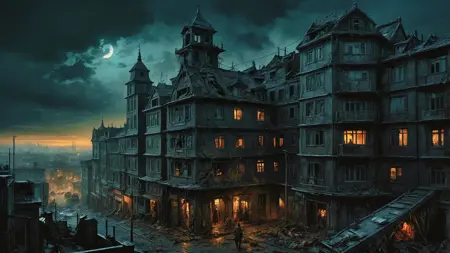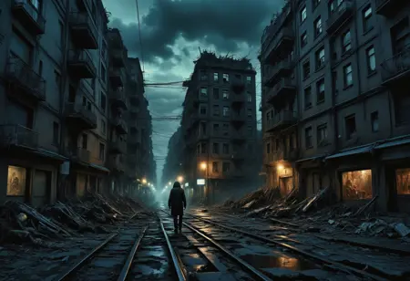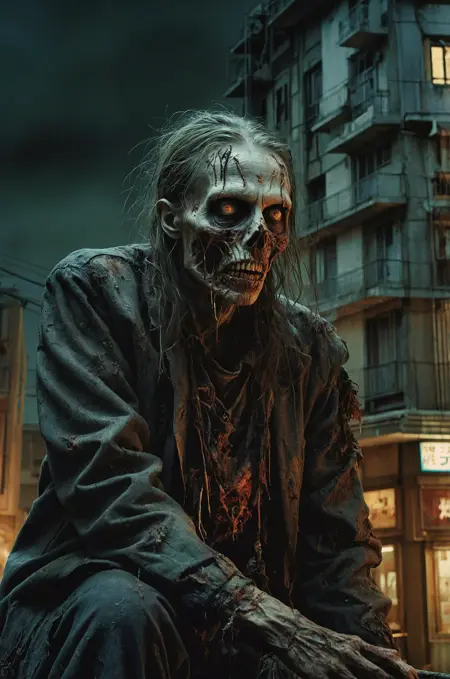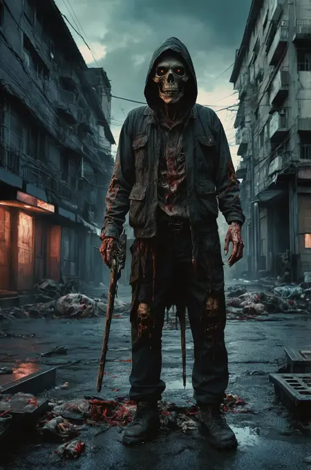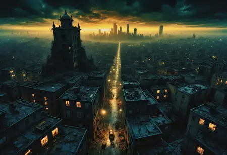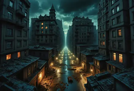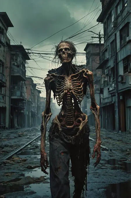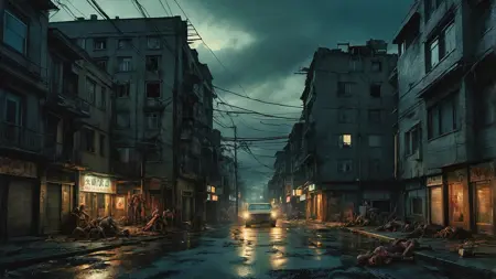 ゾンビと野生の犬がいる暗いディストピア都市を作成するためのLORA [LORA] [FLUX]