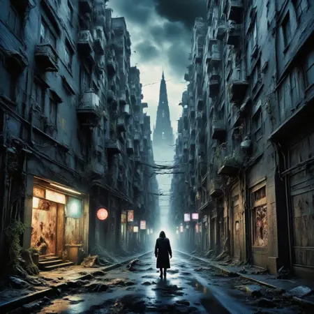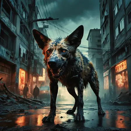 A LORA to create dark dystopian city with zombies and wild dogs [LORA] [FLUX]