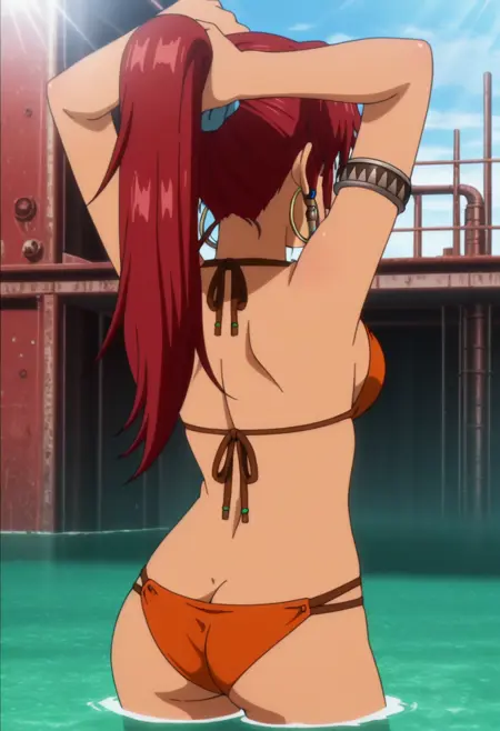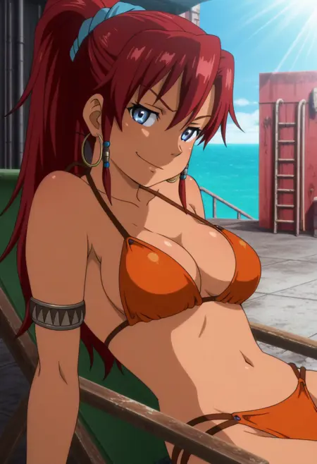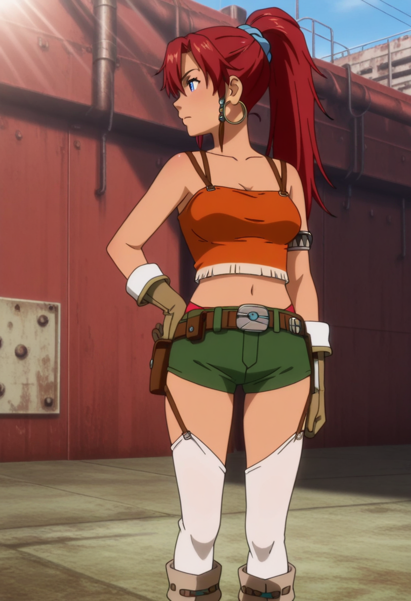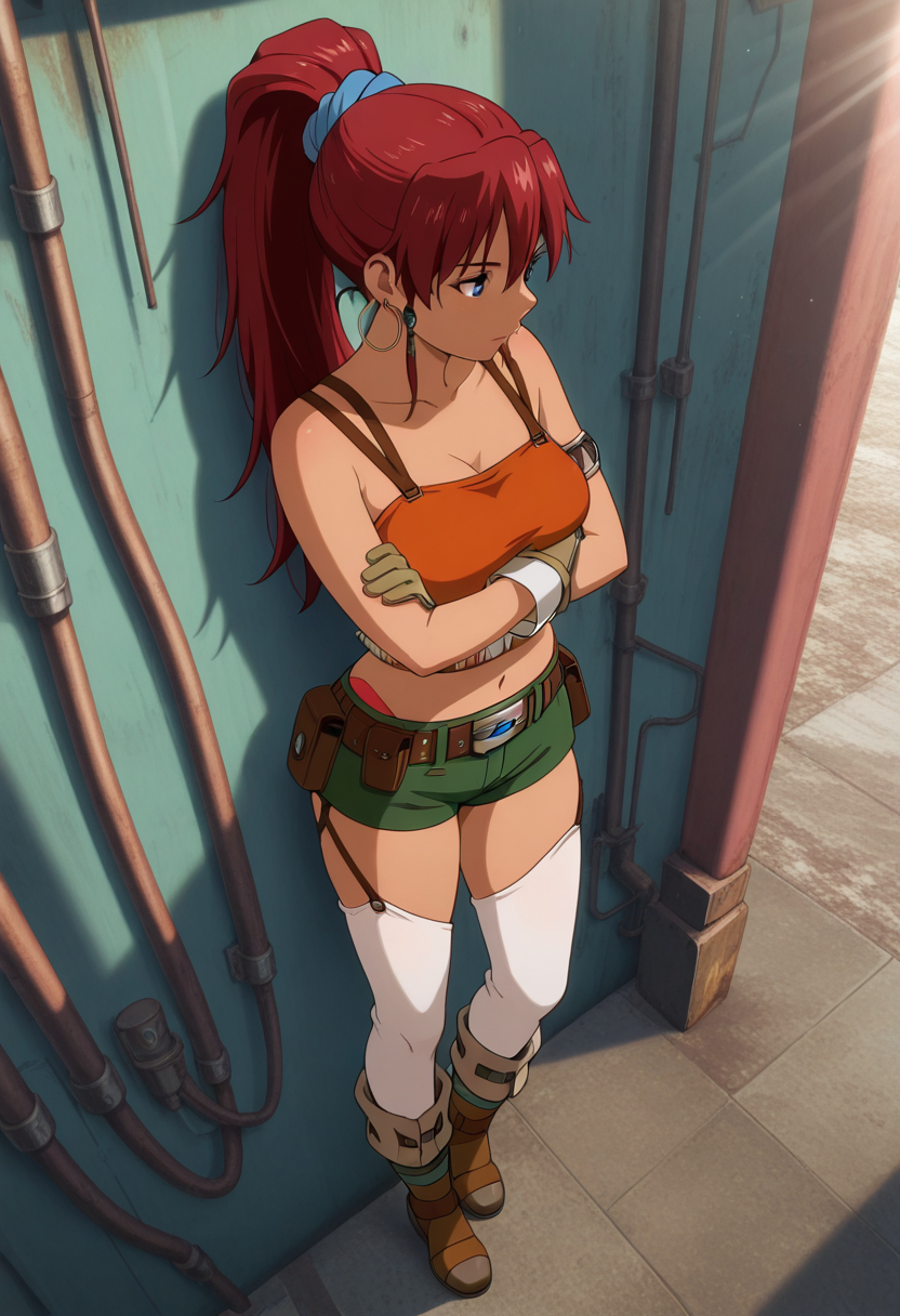 bellowssng, bellows \(suisei no gargantia\), suisei no gargantia, 深色皮肤女性, 蓝眼睛, 发珠, 马尾, 红发, 耳环,
