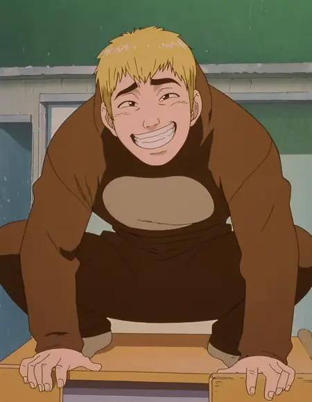 Eikichi Onizuka, 1boy, blonde hair, expressive,
