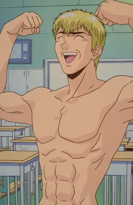 This model creates general style of Great Teacher Onizuka. Large dataset, cleaned/processed. Does artifacts similar to 1990s animes. Eikichi Onizuka tagged by name, but does other characters too if described properly. This one is not focused on faces and expressions, but can do them decently.