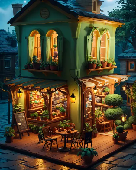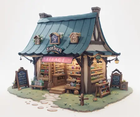 주로 색상이 풍부하고 만화풍의 이소메트릭 스타일의 상점에 대해 학습되었습니다.