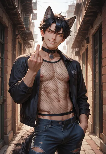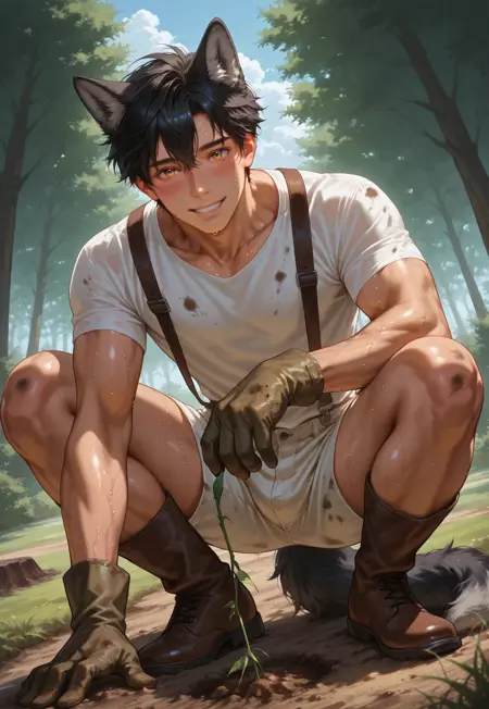 もともとの目的は、以下の特徴を持つ筋肉質なウルフボーイを簡単に描けるシンプルなLoRAを作成することでした:
