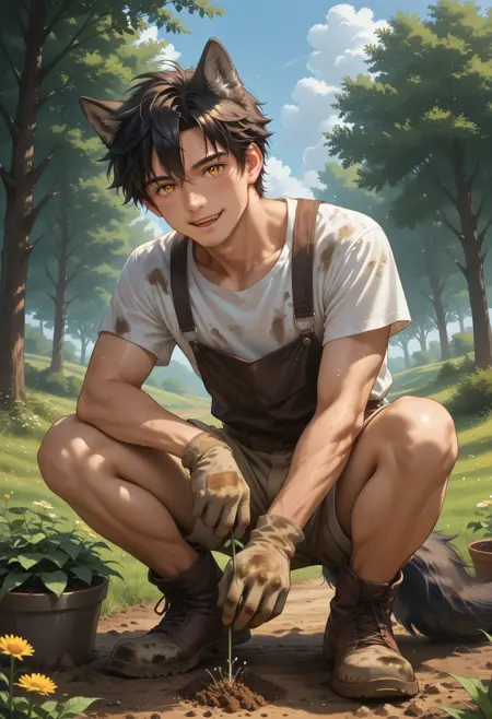 我的初衷是制作一个简单的 LoRA,能轻松描绘出一位健美的狼男孩,具备以下特征: