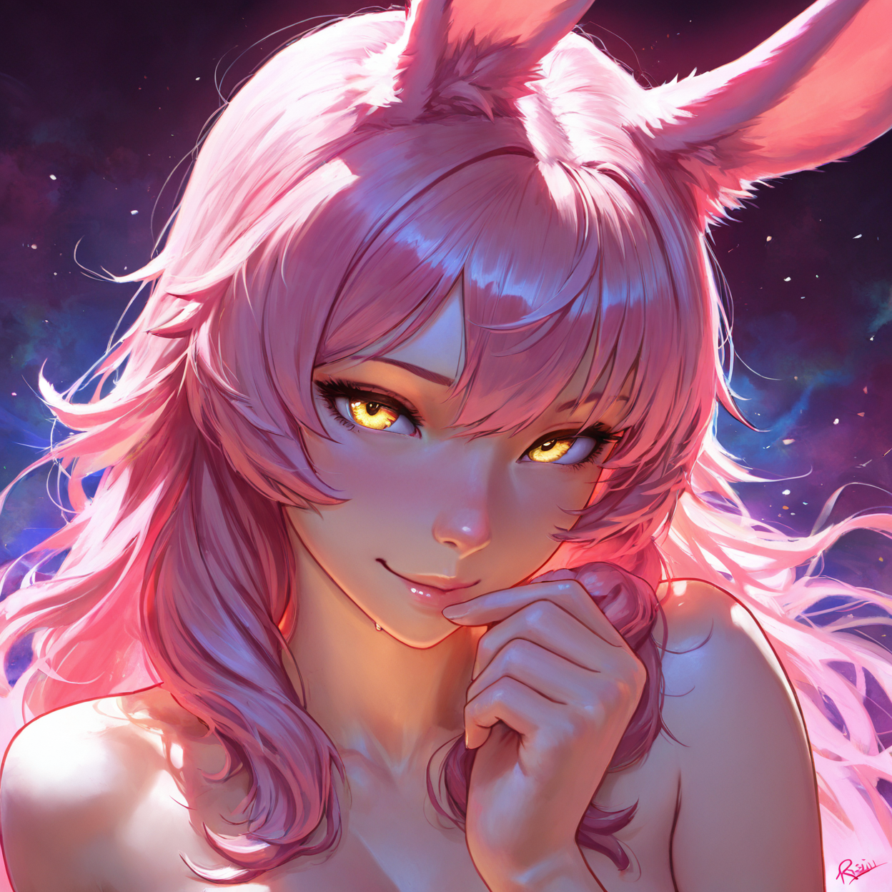 一般的に、ファイナルファンタジーのビエラ種を連想させる、長い流れるようなピンクの髪、ウサギの耳と尾を描く。