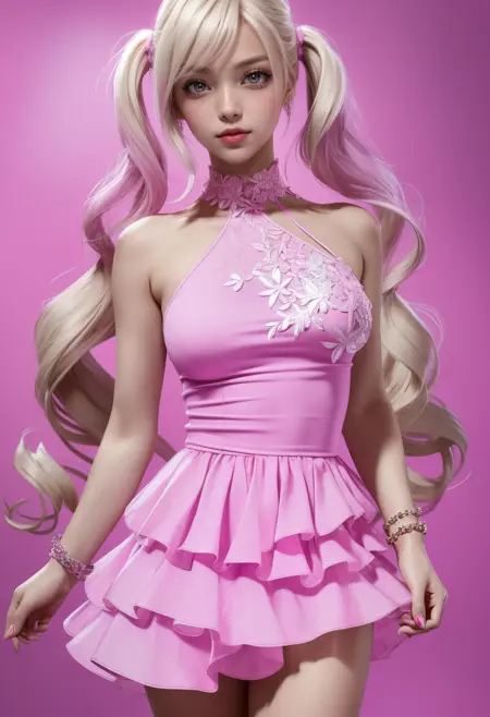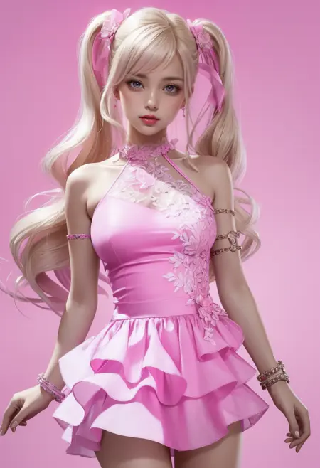 aiondreamstrider额外提示词: 粉色连衣裙、白色镶边、白色刺绣、薄纱拖尾、透明拖地薄纱