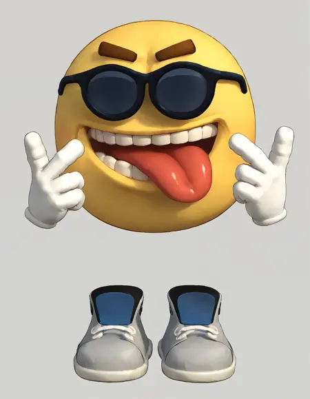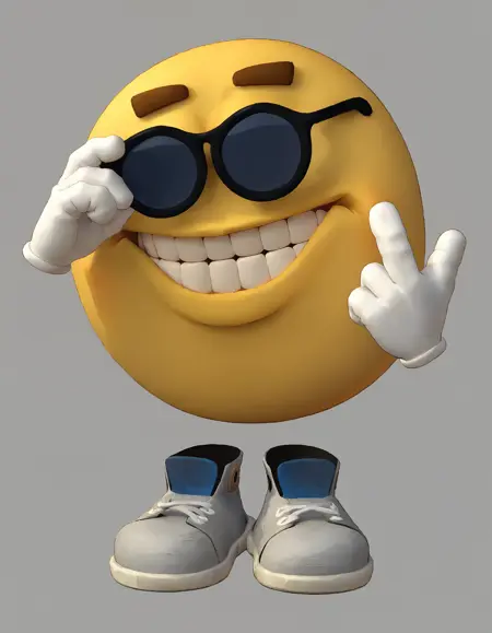使用以下触发词:rzhu, 1pokemon, solo, pokemon character, smile, grin, smiley face, clenced teeth, emoji, black eyes, white gloves, eyebrows, sunglasses, sneakers, ball body,