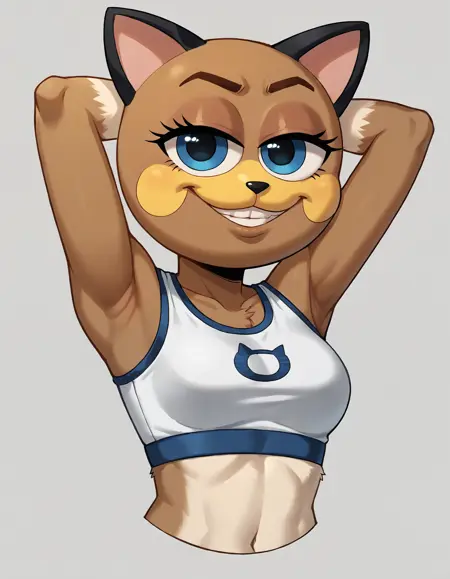 使用以下触发词:rzhu, 1pokemon, solo, pokemon character, smile, grin, clenced teeth, white gloves, brown eyebrows, sunglasses, sneakers,