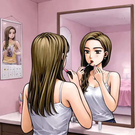 衣装: ヤンキー色のタートルネック、デニムスカート、タンクトップ、レッドミニスカート、