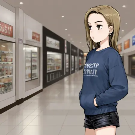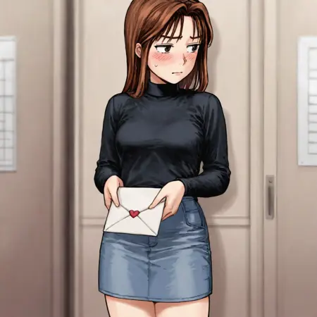 Outfits: yellow turtleneck, denim skirt, tank top, red mini skirt,