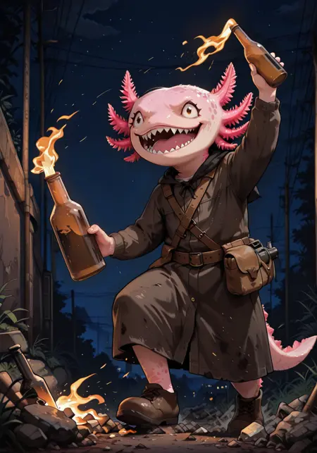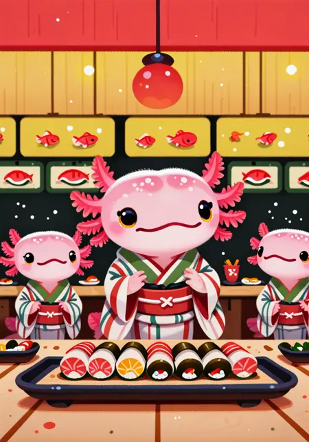 Illustriousは、axolotlが何であるかをそれなりに理解しています。SDXLやPonyよりもはるかに優れています。ただし、縁取りのあるエラはうまく描けず、 Featherのように見えてしまうことがあります。
