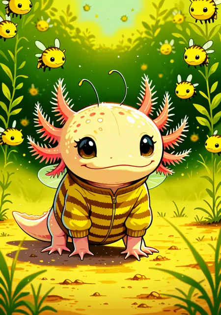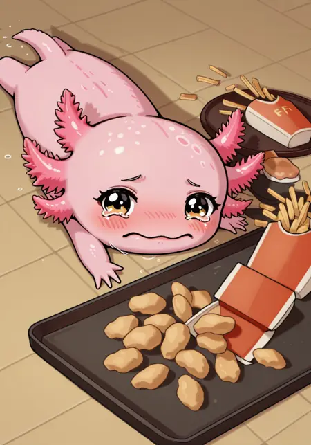 Illustrious kind of knows what an axolotl is, much better than SDXL and Pony does, anyways. It doesn't get the frilly gills though, they end up kind of looking like feathers.