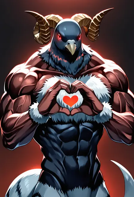 触发词:pigeotaurus、角、肌肉发达、红眼、尾巴、无人类