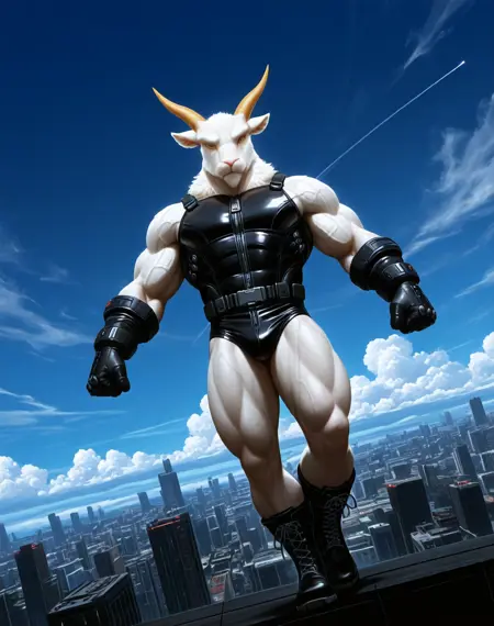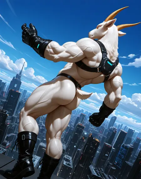The prompts for this lora are ( goat, muscular, ). With some checkpoints one may need to elaborate by writing prompts like ( goat head, goat headed, colored body, colored fur, ) and other similar prompts.