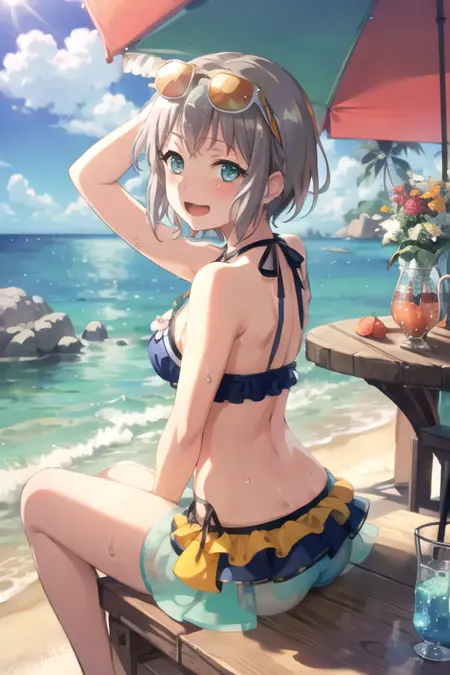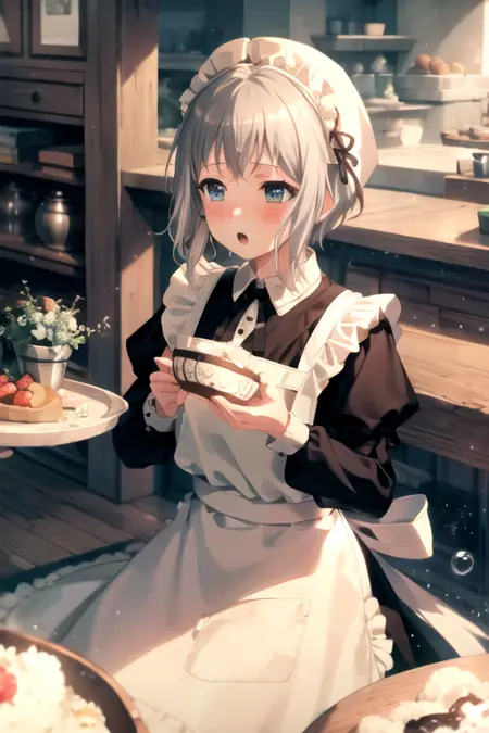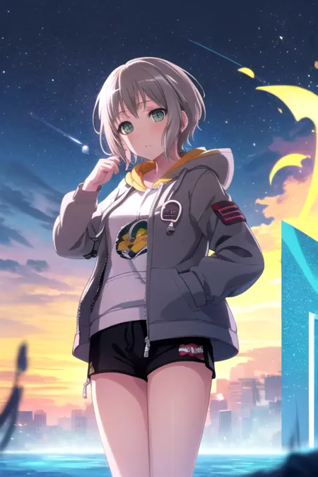 PS. short hair,1girl,solo,blue eyes, grey hair are absorbed by mocachan tag but not Illus