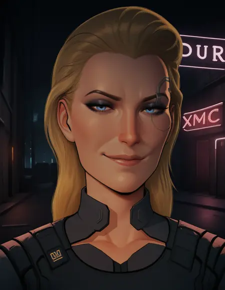 xmeredithx, blonde hair, long hair, blue eyes, makeup, cyberpunk