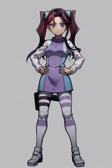 基本プロンプト:1girl, ray akaba,red hair, twintails, hair ornament, purple eyes, long hair