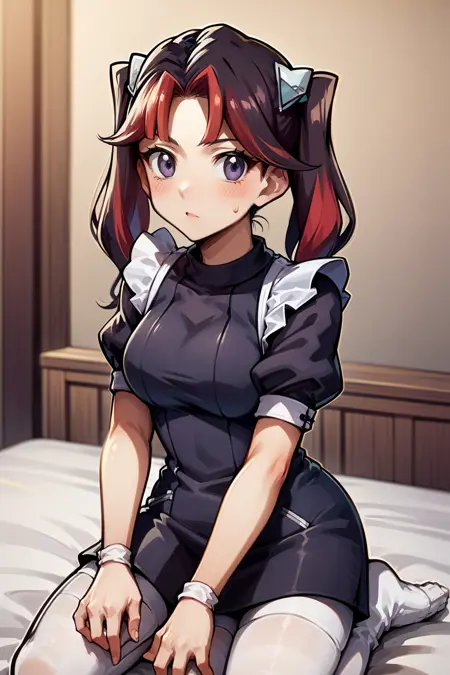 基础提示词:1girl, ray akaba,红发, 双马尾, 头饰, 紫色眼睛, 长发