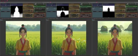 このワークフローは、画像を近距離、中距離、遠距離の3つの深さに分割することから始まります。その後、範囲ごとにインペイントまたは詳細を調整・後処理を選択できます。または、まずインペイントを行い、その後に後処理を行うこともできます。