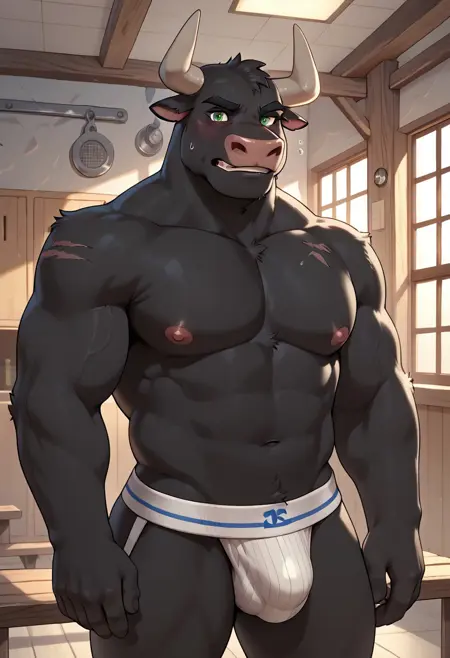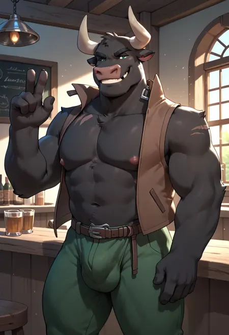 Trigger words- Guntherdw, bull, green eyes, black body fur