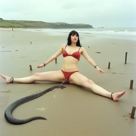 このような状況を想像してください:セクシーな人物が、腕と脚(そしておそらく胸も)広げて地面に平らに縛られ、不規則に地面に打ち込まれた木杭にきつく固定されています。