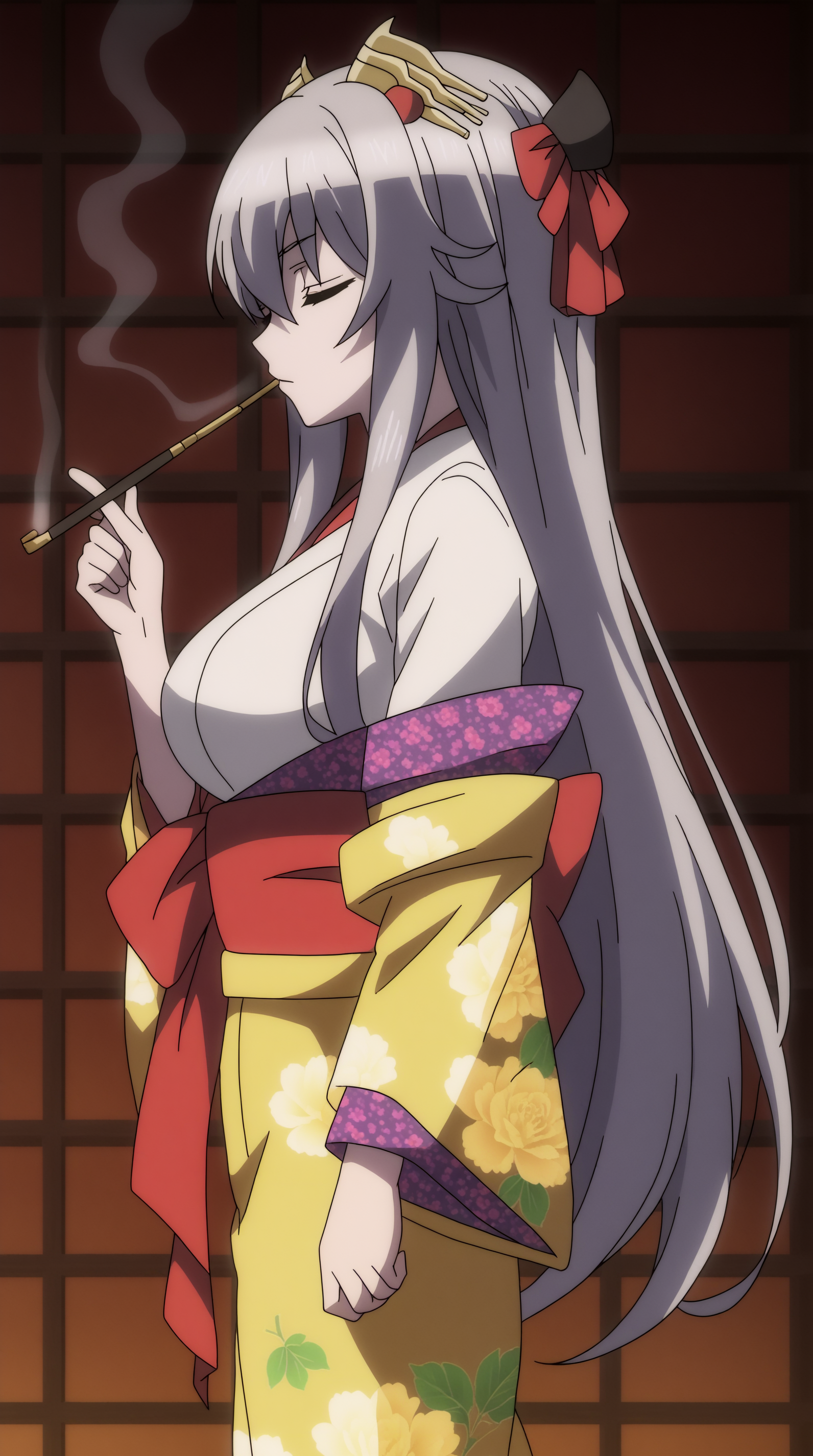 선택적 트리거 단어: 머리 장식, 일본 복장, 키모노, 머리 막대기, 담배 파이프, 기세루, 담배 파이프를 들고 있는 모습