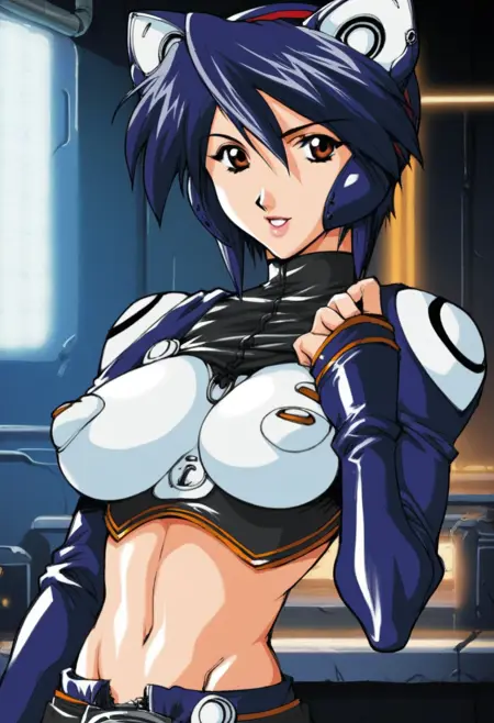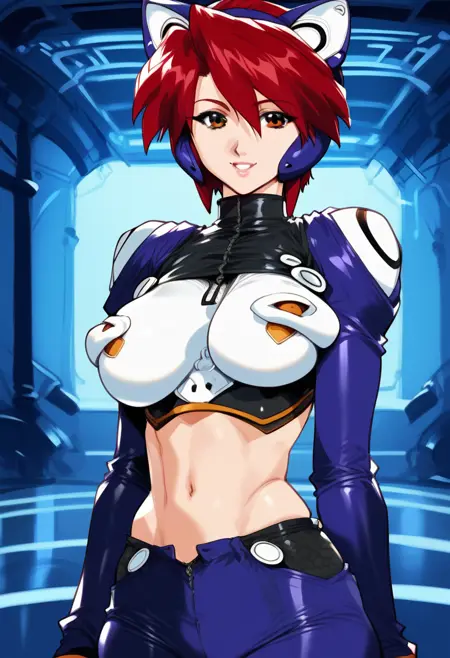 Trigger: akinayume, short hair, red hair female, large breasts, crop top, long sleeves, midriff, pencil skirt, animal ears