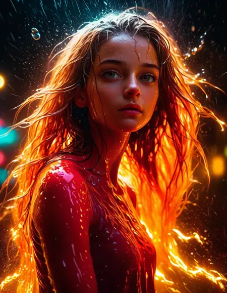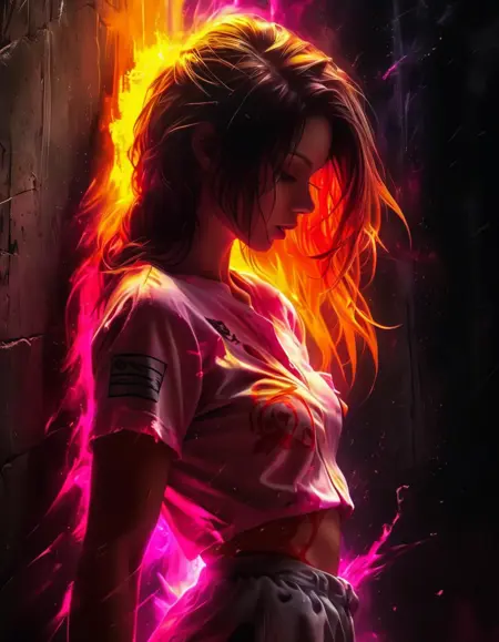 Add prompt: dark backgrounds: bright neon shades, luminous elements, dynamic splashes, ethereal energy, emotional atmospheres, otherworldly themes.