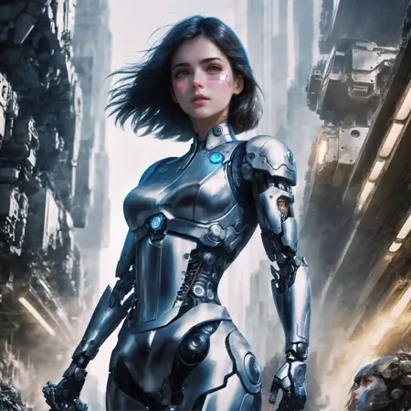 Is Alita, (but not the Alita from the movie, as a personal opinion, I like the movie, but I don't like Alita's style in the movie. In the manga, almost all the characters have huge eyes, so it doesn't make sense to make the main character different from the others by giving her huge eyes).