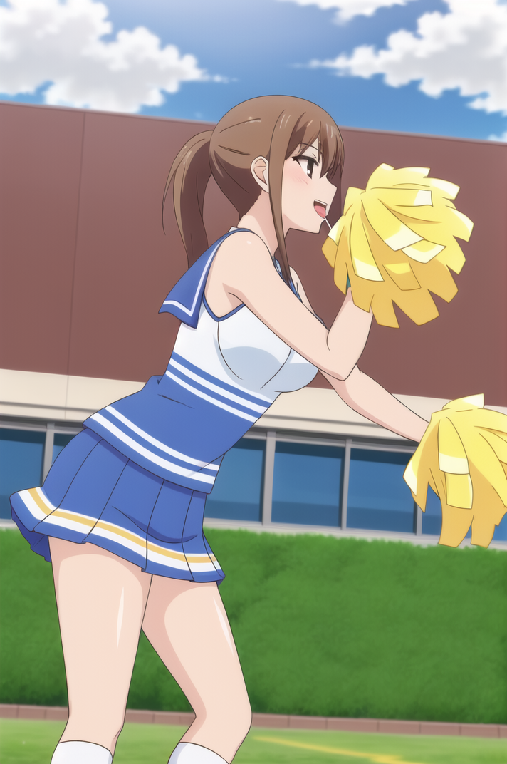 outfit_4, 꼬리머리, 옆머리, 팜팜(응원단), 응원단, 흰색 무릎까지 양말, 프릴,