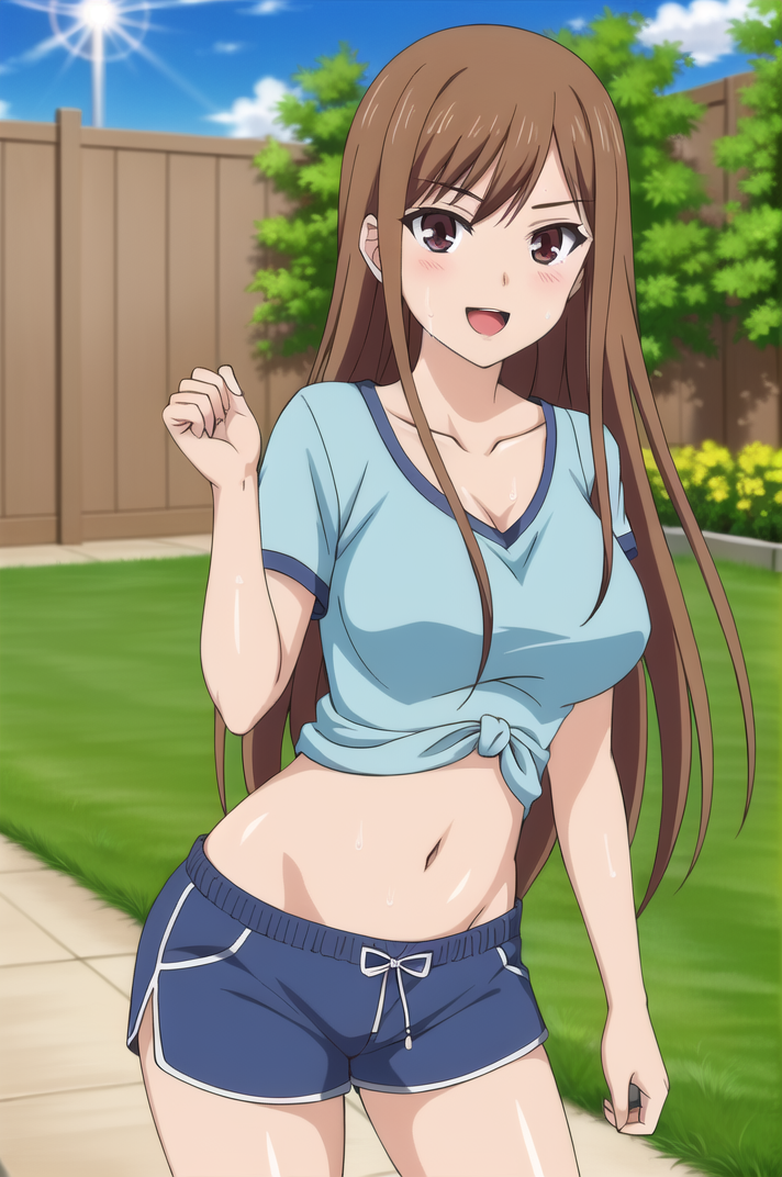 <lora:Overflow_Ayane-v1-03:0.8>, ChopioAyane, 갈색 머리, 긴 머리, 매우 긴 머리, 갈색 눈, 반짝이는, 반짝이는 피부, 시청자 바라보기, 큰 가슴,