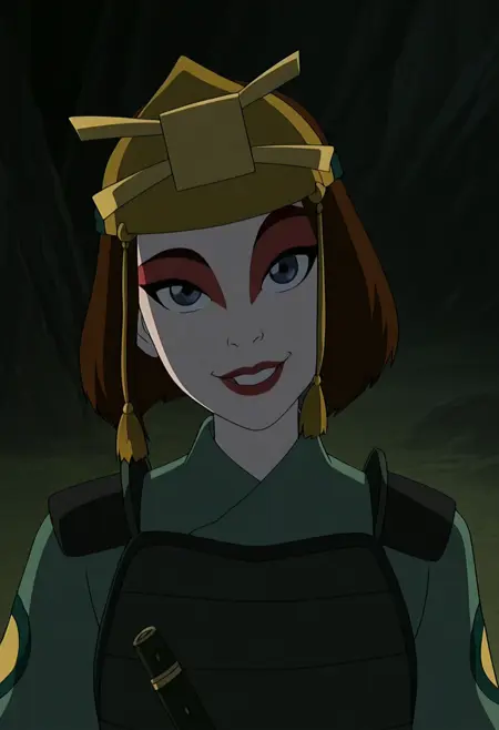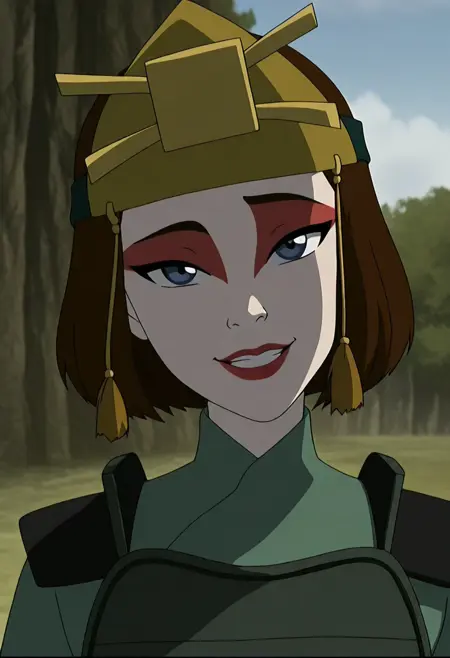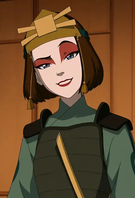 kyoshi 메이크업, 립스틱, 헤드 프로텍터, 빨간 아이섀도우, 일본 갑옷, 녹색 갑옷,