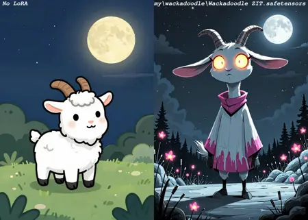 すべては、長く細い首を持つ、いかにも奇妙で愛らしいニワトリの画像に出会ったことから始まりました。私はそのニワトリに「Wackadoodle-doo」と名前をつけました。そして、この一瞬のインスピレーションから、無数の不思議な生き物たちが私の想像力の中に広がり、このLoRAが生まれました。当初の予定より3D寄りの仕上がりになったものの、さまざまなユーモアたっぷりの動物やキャラクターを生み出すのは、本当に楽しかったです。あなたのアートプロンプトに、さらに不思議な驚きを加えるのに最適です。