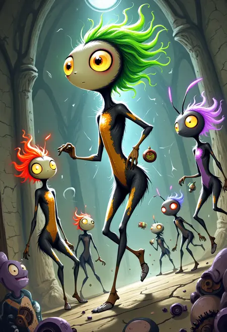 人物与标志性特征:对于人类或类人角色,突出其独特特征以保持辨识度,同时叠加迷人而奇特的 Wackadoodle 风格。