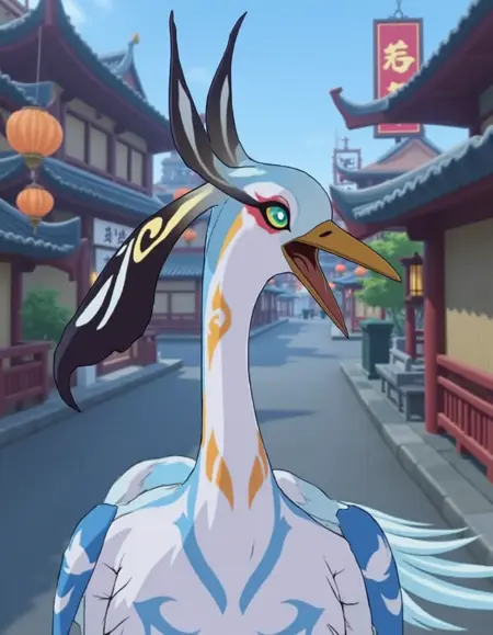 it is possible to generate the character with both open and closed wings, both on the ground and in flight, we also suggest adding the words "strange wings" in the negative prompt