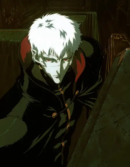 메이어 링크 (바이퍼 헌터 D), 1남자, 붉은 눈, 하얀 머리, 창백한 피부, 뱀파이어, 날카로운 귀,