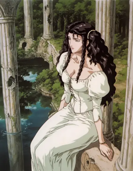 샤를롯 에르본 (바이퍼 헌터 D), 1여자, 갈색 머리, 파동 모양 머리, 드레스, 갈색 눈,